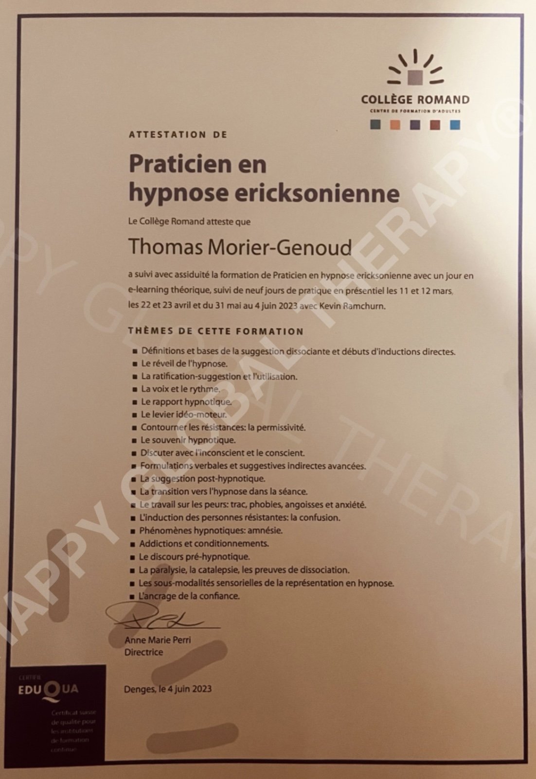 DIPLÔMES ET CERTIFICATIONS HAPPY GLOBAL THERAPY®️ Lausanne